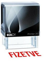 Bélyegző, szó, COLOP "Printer IQ 20/L", Fizetve - azonnali használatra kész bélyegző - a legfontosabb és leggyakrabban használt irodai szövegekkel - lehetséges feliratok: FIZETVE, KIADVA, SÜRGŐS, ÁTUTALVA, DÍJ HITELEZVE - cserepárnája: E/20 - piros színű cserepárna
