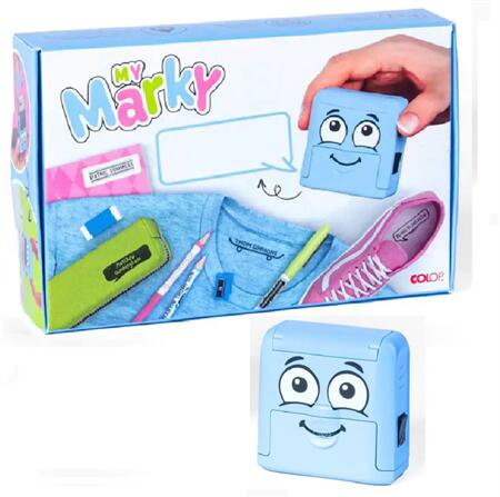 Marky textilbélyegző az egész családnak, ruha, cipő, tornazsák, iskolai tanszerek, kulacs, pohár… feliratozására. Lenyomat színe: feketeTermék színe: világoskék A MARKY textilbélyegző végre kiküszöböli a tárgyak bosszantó elvesztését és összekeverését. A világoskék Marky textilbélyegző Ausztriában készül. A mutatós kartondobozba csomagolt, takaros készlet nem