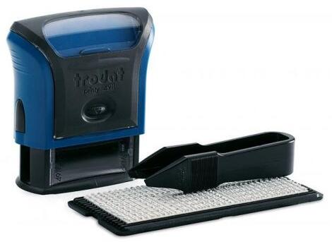 A Printy Typomatic Line sorozat összecsukható, önfestő bélyegzője a ma szükséges rugalmasságot kínálja. 3 soros szöveg, 3 mm betűmagasság, max. 17 karakter soronként. Tartalék párnák 6/4911 típus. Csere párnák: trodat 6/4911