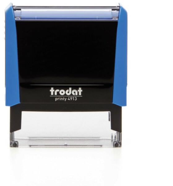 Trodat 4913 Égszínkék bélyegző lenyomattal együtt használatra készen A Trodat Printy 4913 a legkedveltebb önfestékező bélyegző derűs friss égszínkék színben. Maximum 6-7 sor adat fér el a lenyomaton, egy egyéni vállalkozó vagy egy társas vállalkozás főbb adatai mellett plusz információ feltüntetésére is megfelelő vagy akár egy kisebb logó elhelyezésére. A modern
