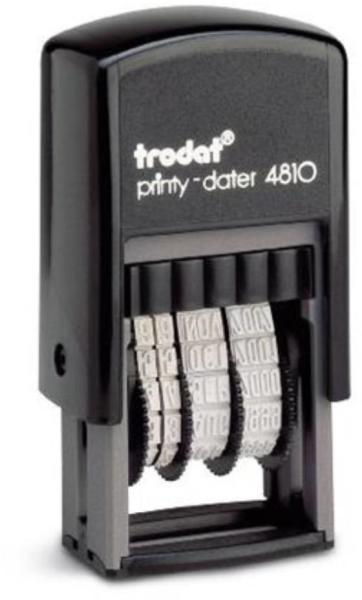 Dátumbélyegző, TRODAT 4810 ISO (IT4810ISO) önfestékező rendszer az évszalag 12 évig használható műanyag test karaktermagasság: 3,8 mm dátum: számmal megjelenítve Gyártó/első EU forgalmazó elérhetősége: Trodat GmbH. A-4600 Wels / AUSTRIA Linzer str. 156. info@trodat. net www. trodat. net