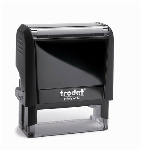 Bélyegző TRODAT Printy 4.0 4913 eco-fekete ház fekete párna A világ első ˝klíma-semleges˝ bélyegzője! Minimális CO2 kibocsátással készült. Sokoldalú, műanyagházas, önfestékező automata bélyegzők mindennapi használatra több szinben. Max. 5 sor szöveghez.