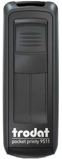 Műanyag házas, önfestékező, hordozható bélyegzőház gyárilag fekete párnával. Max lenyomatméret: 38 mm x 14 mm. Maximum sorok száma: 3-4 sor. Cserepárna: 6/9511 .