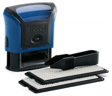 Jigsaw önfestő bélyegző a Printy Typomatic Line sorozatból. Te magad készíted el a szükséges bélyeget. 4 soros szöveg, 2 karakterkészlet: betűmagasság 3 mm, max. 21 karakter soronként vagy betűmagasság 4 mm, max. 17 karakter soronként. Tartalék párnák típus 6/4912. Csere párnák: trodat 6/4912
