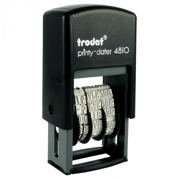 A Trodat Printy 4810 dátumbélyegző 3.8 mm dátum magassággal és több típusú dátum közül választhat. Beépített cserepárna – egyszerűen és tisztán cserélhető, nem szárad be, külön bélyegzőpárnára nincs szükség, azaz önfestékező. A bélyegzőlenyomat színét egyszerűen kiválaszthatja az adatok megadásakor. A kiválasztott bélyegzőt azonnal legyártjuk és post