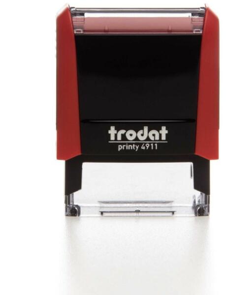 Trodat 4911 Tűzpiros bélyegző lenyomattal együtt használatra készen A Trodat Printy 4911 a legkedveltebb önfestékező bélyegző lendületes tűzpiros színben. Maximum 4 sor adat fér el a lenyomaton, egy egyéni vállalkozó vagy egy társas vállalkozás főbb adatai kényelmesen elférnek rajta. A modern elemek garantálják a kellemes, biztonságos bélyegző fogást. Hihetetlenül k