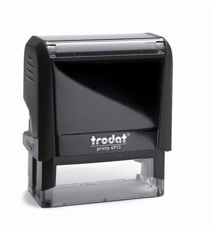 Termék részletekBélyegző, TRODAT "Printy 4911", fekete ház, kék párnával önfestékező rendszer műanyag ház lenyomat méret: 38x14 mm max. 4 sor szöveg cserepárna: 6/4911