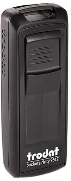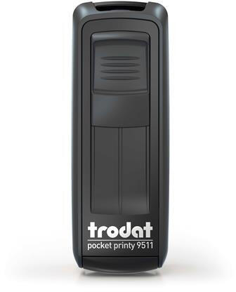 Termék részletekBélyegző, TRODAT "Pocket Printy 9511", fekete ház, fekete párnával önfestékező rendszer könnyű használat műanyag ház fekete párnával max. 4 sor szöveg nyomat méret: 38x14 mm cserepárna: 6/9511