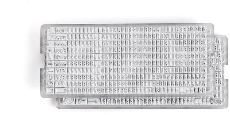 Termék részletekBetűkészlet 2,5 mm magas karakterekkel. 360 betű és jel, 25 piktogram.