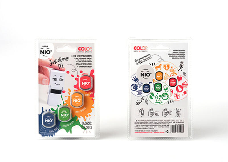 Termék részletek4 db színes cserepárna a NIO bélyegzőkhöz. Kék, zöld, sárga, piros.
