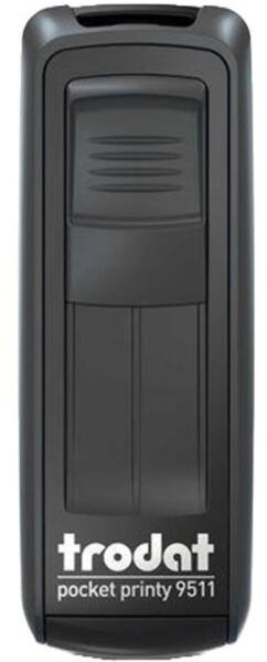 Műanyag házas, önfestékező, hordozható bélyegzőház gyárilag fekete párnával. Max lenyomatméret: 38 mm x 14 mm. Maximum sorok száma: 3-4 sor. Cserepárna: 6/9511 .