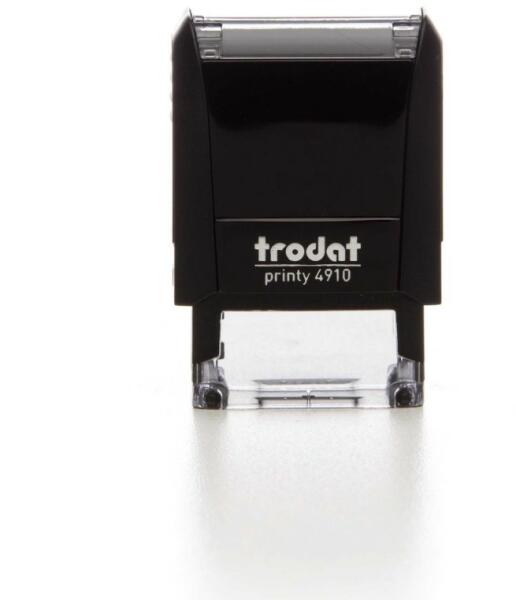 Trodat 4910 Fekete 3 soros bélyegző lenyomattal együtt használatra készen A Trodat Printy 4910 a legkedveltebb önfestékező bélyegző hűvösen elegáns fekete színben. Maximum 3 sor adat fér el a lenyomaton. A modern elemek garantálják a kellemes, biztonságos bélyegző fogást. Hihetetlenül könnyű és kicsi. Beépített cserepárna – egyszerűen és tisztán cserélhető, nem s
