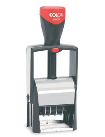 Önfestő bélyegző fekete bélyegzőpárnával. Dátum magasság 4 mm. Könnyen állítható pánt 12 évig. Cserepárna E / 2100 fekete.