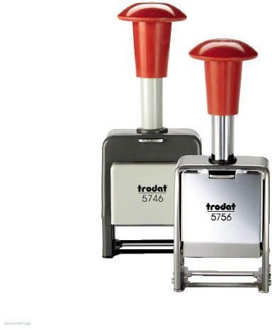 Sorszámbélyegző, irodai használatra, önfestékező. 6 karakter, számmagasság 5,5 mm. 0,1, 2,3, 4,5, 6,12 egyforma leütéssel. Az első 5 helyi értéken a nulla leütése kiiktatható. Fém (5756/M) és műanyag (5756/P) borítással. Cserepárna: 6/5756 piros vagy fekete. .