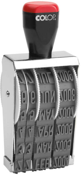 Hagyományos 12 mm-es dátumbélyegző, számos hónapszalaggal.