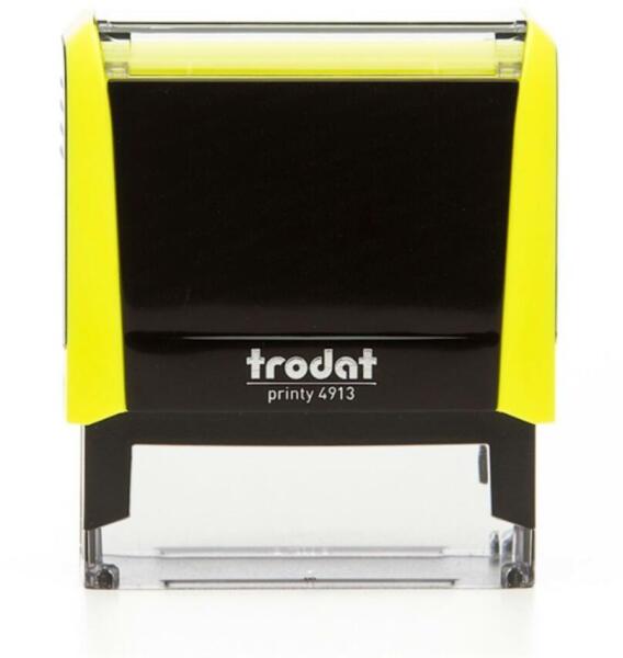 Bélyegző, TRODAT "Printy 4913", neon sárga ház, fekete párnával Klímasemleges CO2=0 Nem hagy ökológiai lábnyomot. A gyártás során 100%-ban megújuló enegiaforrásokat használnak fel. A termékek méretének csökkentésével a gyártás és szállítás folyamán kevesebb energiaforrás szükséges. A megjelölt termékek 65%-ban újrahasznosítható anyagból készültek, illetve a