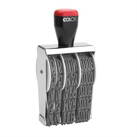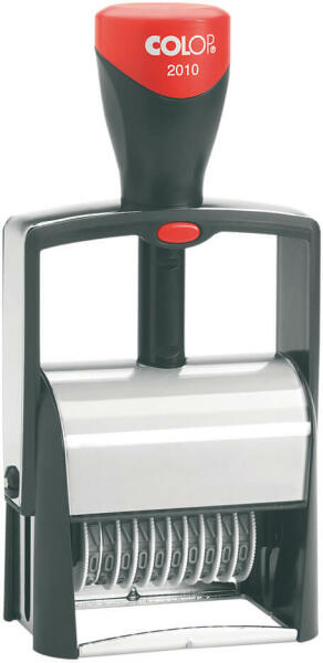 Fémvázas számbélyegző tartós használatra. 5 mm magas karakterekkel 10 számot bélyegez. Minden számszalag 0-9 számjegyeket, perjelet, kötőjelet, üres karaktert és pontot tartalmaz.