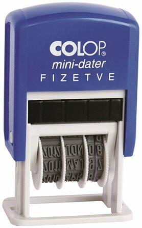 - azonnali használatra kész dátumbélyegző a leggyakrabban használt irodai szavakkal - év/hónap/nap dátumformátummal - az évszalag 12 évig használható - a szöveg kék, a keltezés piros színben jelenik meg - S160/L szöveg: FIZETVE - cserepárnája: E10, E10/2Gyártó/első EU forgalmazó elérhetősége: COLOP Stempelerzeugung Skopek GmbH&Co. KG 4600 Wels, Dr. -Arming-Straße 5
