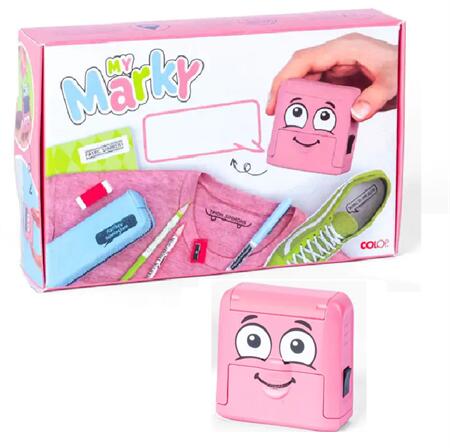 Marky textilbélyegző az egész családnak, ruha, cipő, tornazsák, iskolai tanszerek, kulacs, pohár… feliratozására. Lenyomat színe: feketeTermék színe: rózsaszín A MARKY textilbélyegző végre kiküszöböli a tárgyak bosszantó elvesztését és összekeverését. A világoskék Marky textilbélyegző Ausztriában készül. A mutatós kartondobozba csomagolt, takaros készlet nemc