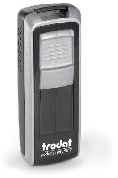 Trodat Pocket Printy 9512 Silverblack zsebbélyegző (47x18 mm) lenyomattal együtt használatra készen. A Trodat Pocket Printy 9512 a legkedveltebb önfestékező zsebbélyegző ezüst-fekete színben. A zsebbélyegzőcsalád közepes méretű tagja maximum 5 sor szöveggel, ezüst-fekete színű vázzal. Tökéletes megoldás azok számára, akik sokat utaznak, és a bélyegzőre is gyakran sz