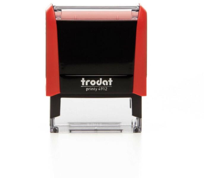 Trodat 4912 Tűzpiros bélyegző lenyomattal együtt használatra készen A Trodat Printy 4912 a legkedveltebb önfestékező bélyegző lendületes tűzpiros színben. Maximum 5 sor adat fér el a lenyomaton, egy egyéni vállalkozó vagy egy társas vállalkozás főbb adatai kényelmesen elférnek rajta. A modern elemek garantálják a kellemes, biztonságos bélyegző fogást. Hihetetlenül k
