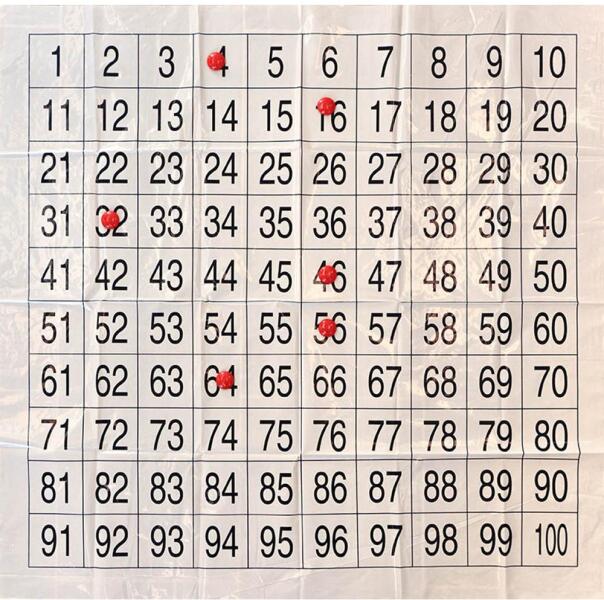 Összehajtható, műanyag százas tábla 6 db piros koronggal. A százas számok azonnali áttekintését teszi lehetővé. A táblán bejelölhetjük a számokat a táblához tartozó korongokkal. A demonstrációval a gyerekek követni tudják a megoldandó feladatokat. Mérete: 98 x 100 cm.