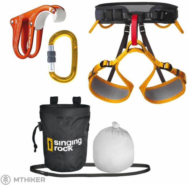 GYM PACKET / M0027 Ideális készlet azok számára, akik szeretnének mászni a falon vagy kint a sziklákon. A készlet kedvezményes áron tartalmazza: VERSA II univerzális ülésheveder állítható lábakkal és párnázással OXY ovális duralumínium karabiner csavaros zárral félautomata RAMA biztosíték fokozott fékhatással NAGY magnézium táska gyorsan záródó rendszerrel és meg