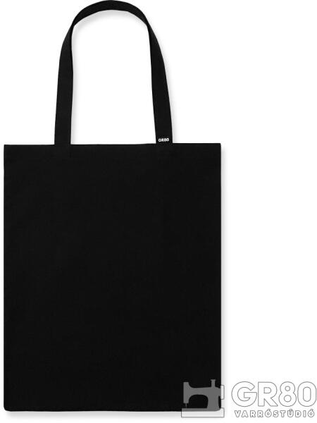 Teljesen fekete, egyszínű BASIC vászontáska 100% pamutból (OEKO-tex I. minősítés), hosszú füllel, erős francia varrással. Vállra is akasztható, zero waste, környezetbarát bevásárló öko textil szatyor, shopper bag. Mérete: kb. 36 x 42 cm. Pánt hossza: 55 cm. Pánt szélessége: 2,5 cm. Színe: fekete. Rendelhető belső zsebbel vagy anélkül. Kicsire összehajtható, így bá