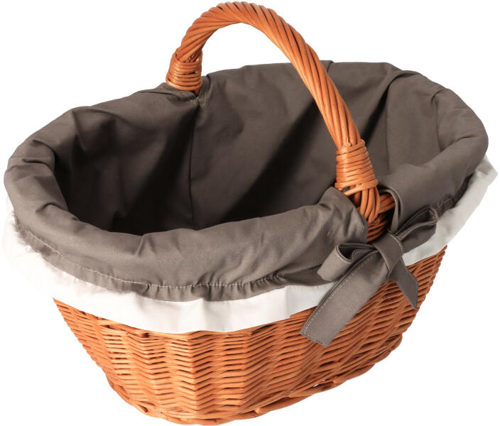 Ezt a gyönyörű, kézzel font kosarat magával viheti a pékségbe vagy a zöldségpiacra, de egy kisebb piknik alkalmával is jó szolgálatot tesz. A kosárban lévő szövet kivehető, így szükség esetén könnyen kimoshatja. A kosár fűzfavesszőből készült, magassága fogantyú nélkül 24 cm. Mivel kézzel készült és természetes anyagot használunk, a méretek csak hozzávetőle