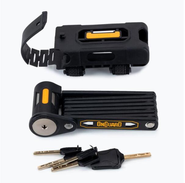 Kiváló minőségű acél összecsukható zár Vázra szerelhető tartóval Korrózióvédelemmel ellátva 5mm vastag edzett acélból 3 db kulcs Hossz: 780mm Szín: fekete