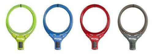 12 mm átmérőjű, 900 mm hosszú acélkábel. Ergonomikus forma. A vinil bevonat megakadályozza a karcolásokat. Beépített állítható 4 számjegyű kombinációs zárral. Master Lock 7 biztonsági osztály.