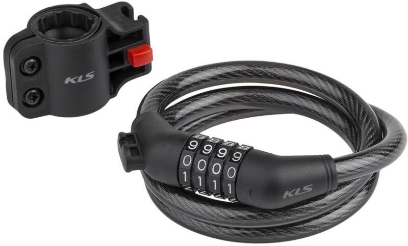számkódos spirál zár KELLYS designban állítható PIN kód acélsodrony átmérője Ø5,6mm zár külső átmérője Ø12mm nyeregcső konzollal méret (hossz): 1000mm szín: fekete