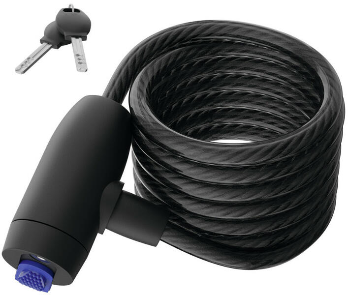 Basi-ZR 302 kulcsos spirálzár porvédővel kulcsos bicikli zárkettő darab fúrt kulccsalműanyag zárburkolat porvédővelhosszú acél sodrony műanyag bevonattal