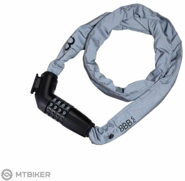 Biztonságos kerékpárzár 5 mm vastag, tartós acéllánccal. A zár 8-as biztonsági fokozatú. A négyjegyű numerikus kódot a felhasználó állíthatja be. Masszív, fém zárszerkezet. Nylon fényvisszaverő huzat a nagyobb biztonságért és a kerékpárváz karcolásoktól való védelméért. Méretek: 5 mm / 5 mm x 1000 mm. Kompatibilis a BBL-93 kábelkötegelővel.