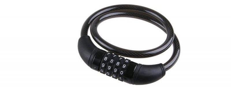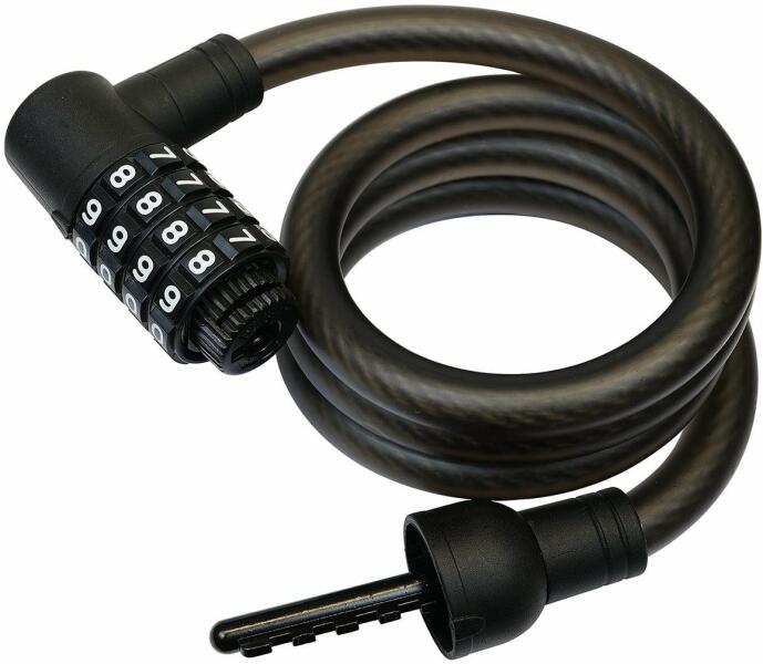 Kerékpárzár - Reteszelés típusa: kód Védelmi fokozat: alapszintűAnyag: acél Szín: fekete Hossz: 45 cm Tömeg: 80 g