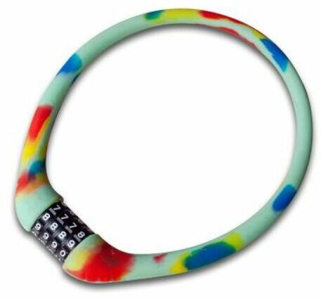 spirálzár tekercses acélkábellel és a kábel színes PVC bevonatával állítható zárkód numerikus 4-es kombinációval kontrasztos színű tárcsák a szebb dizájn és a zárkód egyszerűbb beállítása érdekében hossza 1000 mm átmérő 12 mm