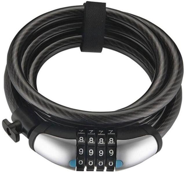 Kerékpárzár - Reteszelés típusa: kód Védelmi fokozat: alapszintűAnyag: acélhuzal Szín: fekete Hossz: 180 cm Tömeg: 600 g