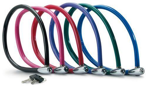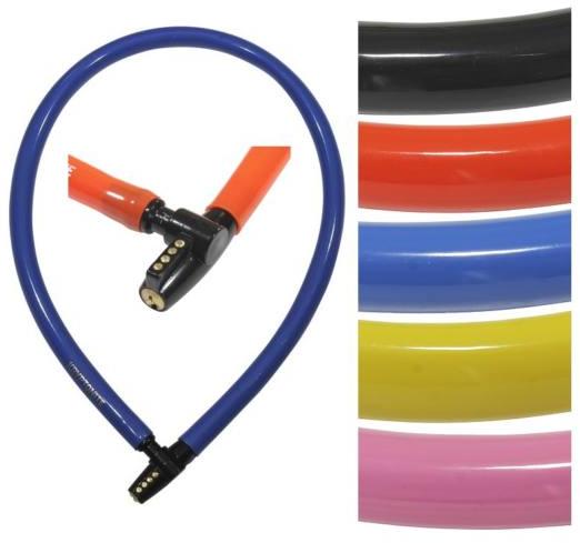 550 mm hosszú, 6 mm átmérőjű acél csavart kábel. Vinil bevonattal, hogy megakadályozza a karcolódást. Beépített hengeres kulcsos zárszerkezettel. Master Lock 3 biztonsági osztály.