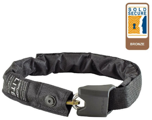 Hiplok Lite integrált láncos lakat, 75 cm x 6 mm, fekete Magas minőségű kulcsos láncos lakat, mely derékra csatolható (állítható a hossza a derékbőségnek megfelelően: 66-112 cm) Többféle divatos színben elérhető. Eurobike Design Award győztes termék Kiemelkedő biztonság: láncszem vastagság: 6 mm edzett acél, lakatbilincs vastagság: 8 mm edzett acél, több tanúsító s