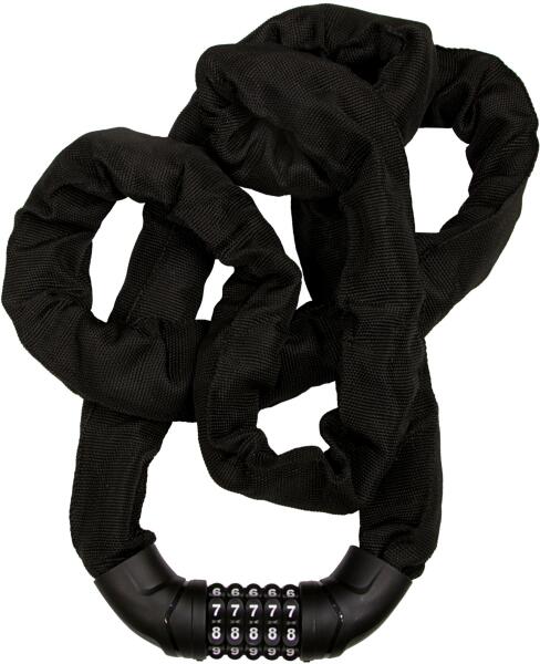 Alap védelem alacsonyabb lopáskockázatú kerékpárokhoz. 4 mm vastag négyszögletes lánc alkotja, anyaghuzat borítással, mely védi a vázat a sérülésektől. Könnyű lakat. Minőségi cilinderrel van ellátva, egyénileg beállítható, három kombinációs számzárral. 110 cm hosszú, 4 mm vastag. Biztonsági szint: 3