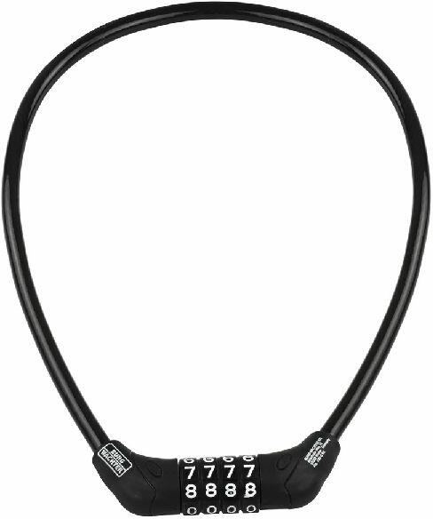 számzáras kerékpárzár, könnyű kezelhetőség, 4 számtárcsa, 10.000 kódvariáció, átkódolható számkombináció, gyors és egyszerű használat, acél sodrony műanyag bevonattal