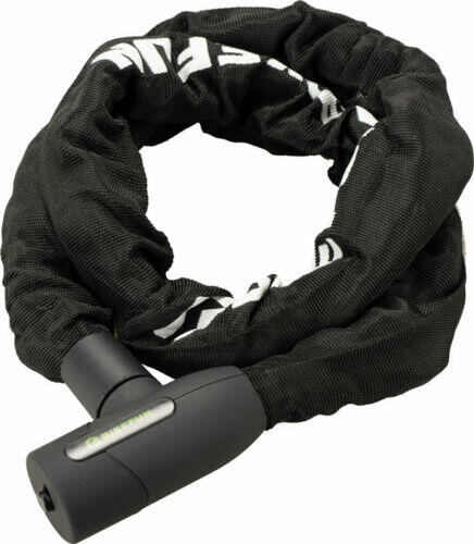 Alap védelem az alacsony kockázatú lopások ellen. Alacsonyabb árkategóriájú és gyerek kerékpárok lezárására ajánlott. 4 mm vastag négyszögletes lánc anyaghuzat borítással, amely védi a vázat a sérülésektől. Könnyű lakat. Háromjegyű számkombináció. Könnyen szállítható a nyeregcső köré tekerve.