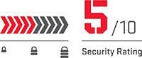 A zár teste időjárásálló, edzett acélból készült. Béklyója edzett acélból készült, 13 mm átmérőjű nyolcszögletű profillal. A kengyel vinilbevonata megakadályozza a festék karcolódását. A zár szabotázsbiztos tárcsahengert tartalmaz és dupla kifeszítésálló retesz . A kulcslyuk fedele megakadályozza a szennyeződés bejutását. Master Lock 10 biztonsági osztály.