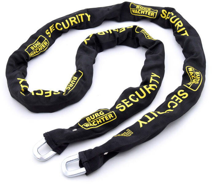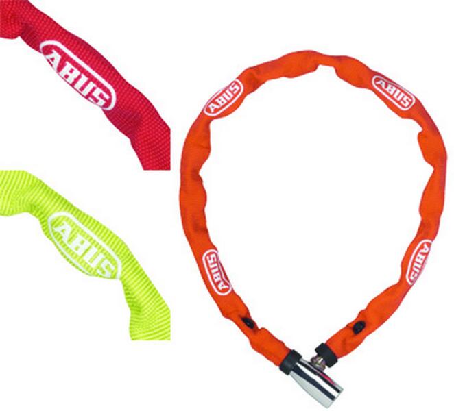 Alap védelem az alacsony kockázatú lopások ellen. Alacsonyabb árkategóriájú és gyerek kerékpárok lezárására ajánlott. 4 mm vastag négyszögletes lánc anyaghuzat borítással, amely védi a vázat a sérülésektől. Könnyű lakat. ABUS minőségi cilinderrel. Két kulccsal. Könnyen szállítható a nyeregcső köré tekerve. Nagyon praktikus a használata, mivel a lakatfej két