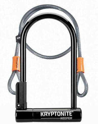 Kryptonite Keeper STD U-Lakat hurokkábellel Megújult zárszerkezet, mely az U-elemet mindkét végén lezárja, megnehezítve a zártörést, melyhez mindkét U-szárat át kell vágni. Tartalmazza a praktikus Snap-in rögzítő elemet 12 mm átmérőjű erősített acél U-elem Nagy biztonságú BenFoot tervezés Megerősített gallér a zárszerkezetnél a nagyobb védelem érdekében Nagy biz