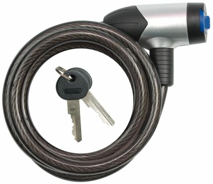 Univerzális kábelzár 150 cm hosszú, 10 mm átmérőjű, kulccsal zárható. Az egyszerűségre és a megbízhatóságra fogad. Megvédi kétkerekű kedvesét, bárhol és bármikor parkol. Termék részletek: Anyaga: acélhuzal, műanyag Átmérő: 10 mm Hossza: 150 cm Csomag tartalma: 1 x zár + kulcsok