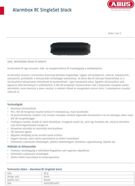 Riasztó kerékpárokhoz. Magasan fejlett 3D riasztóegység, amely gyorsan és egyszerűen rögzíthető bármilyen értékes tárgyhoz. A mellékelt távirányítóval gyorsan és egyszerűen aktiválhatja a Alarmbox RC-t. Egy gombnyomás, és a riasztó élesítve van. Az Alarmbox RC egy innovatív, ütés- és mozgásérzékeny 3D riasztóegység a kerékpárjához. Min. 100 dB hangerejű rias
