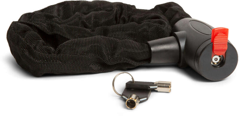 Erős, tömör lánc edzett acélból. Védő szövet borítással, mely megvéd a karcolásoktól. A készlet két kulcsot tartalmaz. Súly: 830 gMéretek: 7 mm x 1060 mm