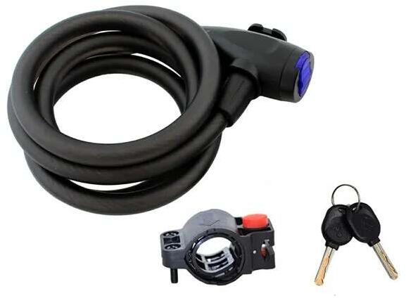 Kerékpár- / motorkerékpárzár acélkábel formájában. Tökéletes egykerekűek (motorkerékpárok, kerékpárok) lopás elleni biztosítására. A vastag nejlonfonatba ágyazott edzett acéllánc hatékonyan megakadályozza a kerékpár illetéktelen használatát. A robusztus zár biztosítja a láncot a rossz kulccsal történő nyitás ellen. A zár kiegészítő borítással rendelkezik,