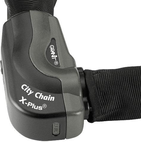 Gránit erősségű, 10 mm-es hatszögletű lánc, amely rendkívül ellenálló a vágással, széthuzatással és csavarással szemben. Szabadalmaztatott ABUS erőcella technológia, a lánc közvetlenül záródik a lakattestbe. A szabadalmaztatott ABUS X-Plus cilinder maximális védelmet nyújt lopás ellen. Automatikus kulcslyukfedés. 10 mm-es hatszögletű lánc, gránit keménységű, ren